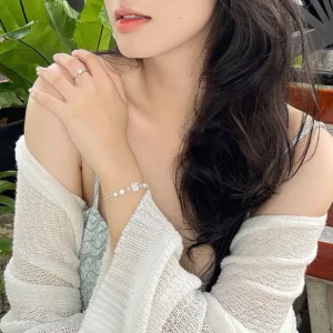 Lắc tay bạc nữ Tyche Blossom dây xù bắt sáng lấp lánh,vòng tay sang trọng thanh lịch phù hợp đeo đi học,đi làm,quà tặng