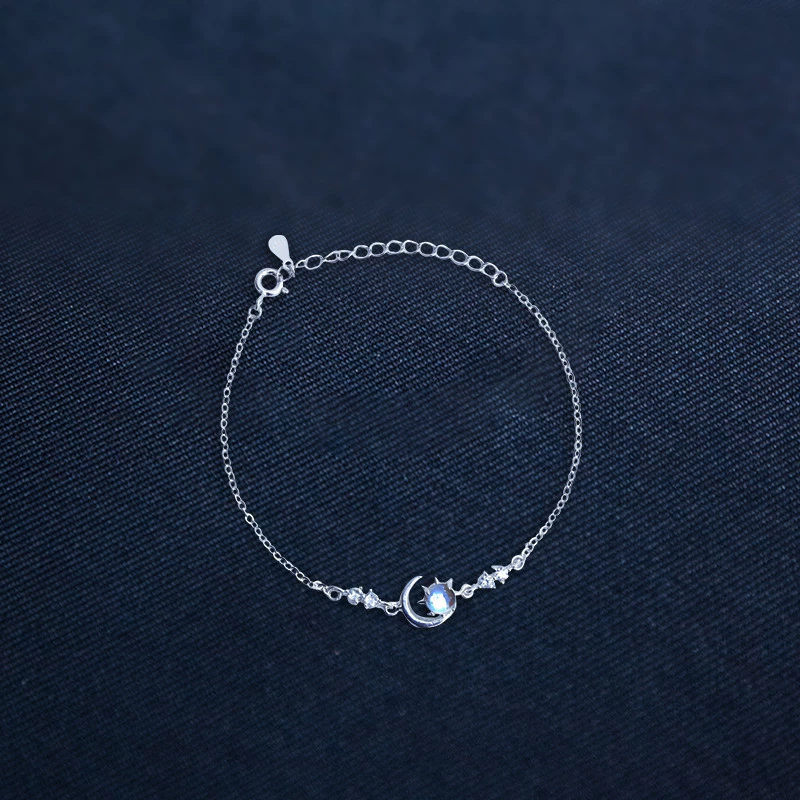 Lắc tay bạc S925 mặt trăng đá moonstone , Lắc tay bạc S925 nữ cao cấp nữ tính MoonLine LT18: