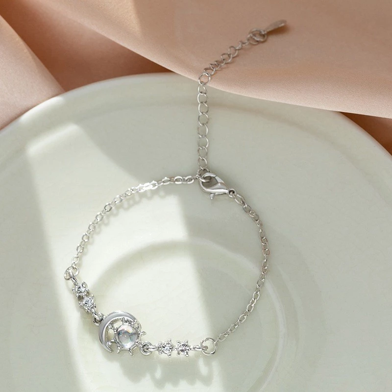 • Kiểu dáng: lắc tay hình mặt trăng đính kèm đá moonstone