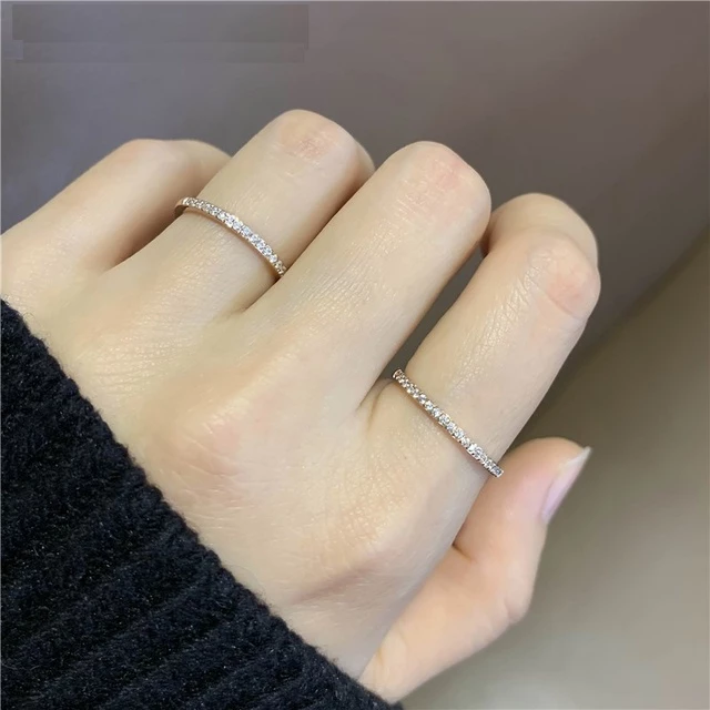 Nhẫn bạc đính đá 1 hàng được chế tác từ bạc cao cấp, bề mặt được đánh bóng mịn màng, tôn lên vẻ sáng sang trọng. Phần thân nhẫn thanh mảnh ôm vừa vặn ngón tay, mang lại cảm giác thoải mái khi đeo. Dọc theo thân nhẫn là một hàng đá nhỏ được đính tỉ mỉ, tỏa sáng nhẹ nhàng dưới ánh sáng, tạo điểm nhấn tinh tế mà không quá cầu kỳ.
